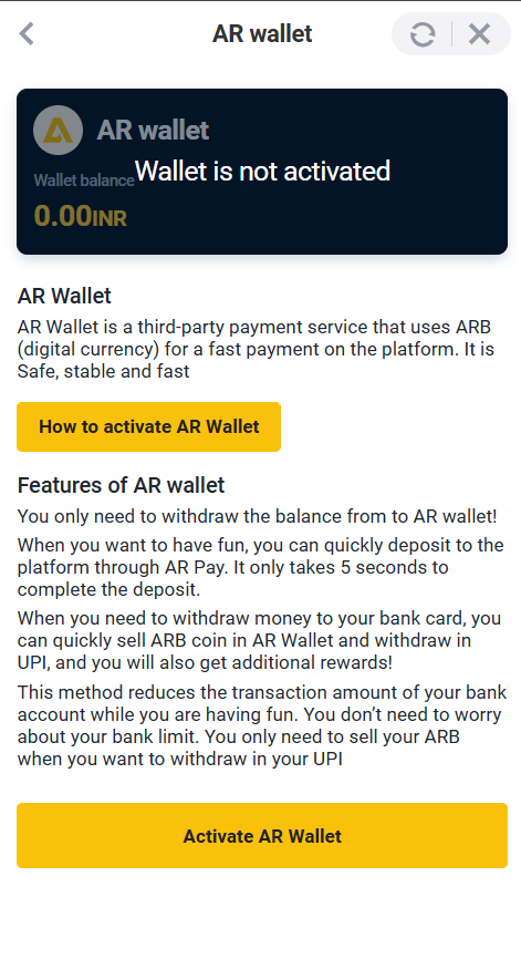 The wallet design of the Daman Games is simple. All the financial transactions undertaken by the player take place in the wallet.