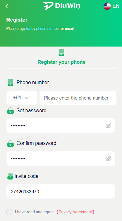 • Always use the mobile number linked to your Diu Win account.